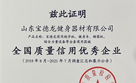 由中國質量檢驗協會主辦的“2022年”3.15國際消費者權益(yì)日“產品和服務質(zhì)量誠(chéng)信承諾”主題活動暨全國產品和服(fú)務質量誠信承諾企業發布公告。20年來(lái)s終以匠心精神製造產品的山東寶德龍(lóng)健身(shēn)器材有限(xiàn)...