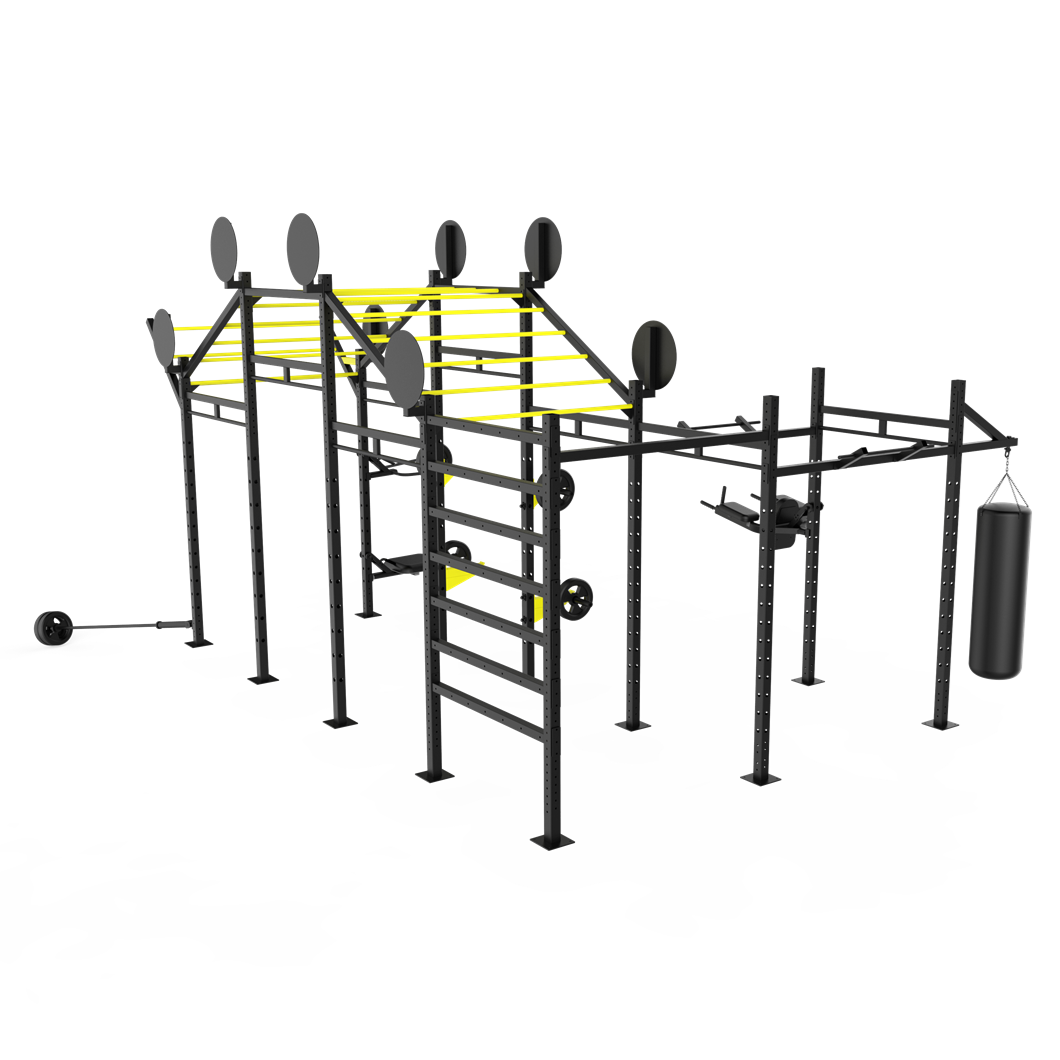 CrossFit多功(gōng)能訓練架可滿足一套完整的(de)訓練體係,並提供定製模塊係統,搭配多功能訓練板,引體向上,健身配件儲物架,健身球靶,戰鬥繩連接器,單杠,懸臂夾袋(dài)器,升降訓練平台等(děng)組合功能