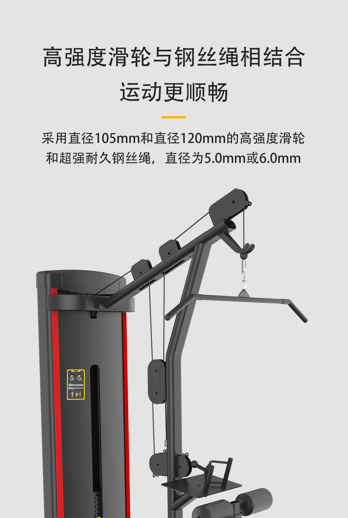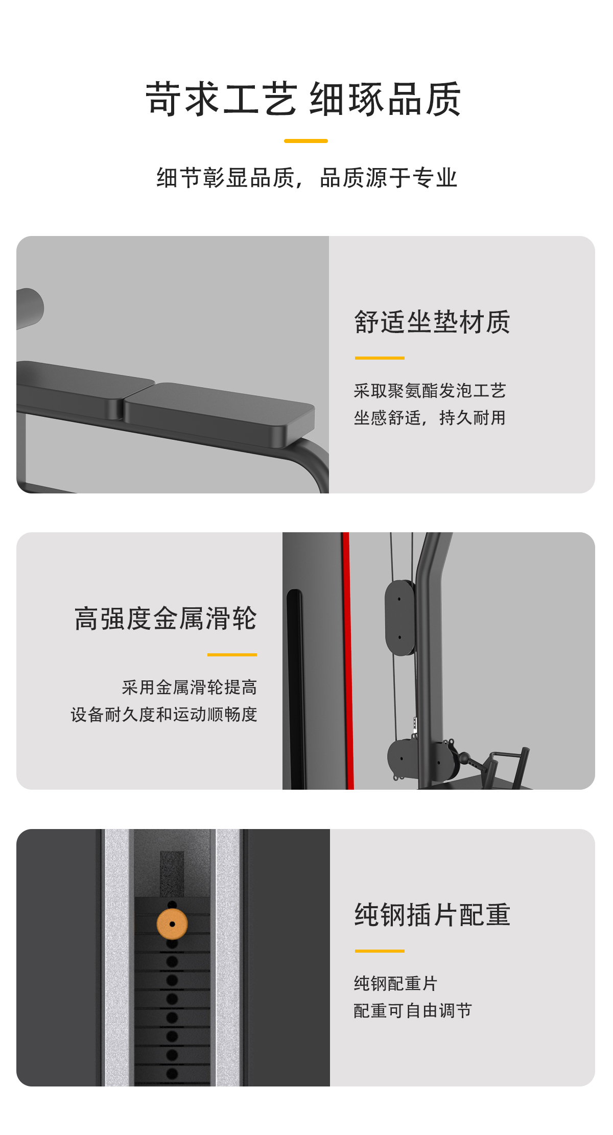配重采用(yòng)強磁插(chā)銷,一次性(xìng)成型坐墊,高檔優質滑輪及鋼絲繩