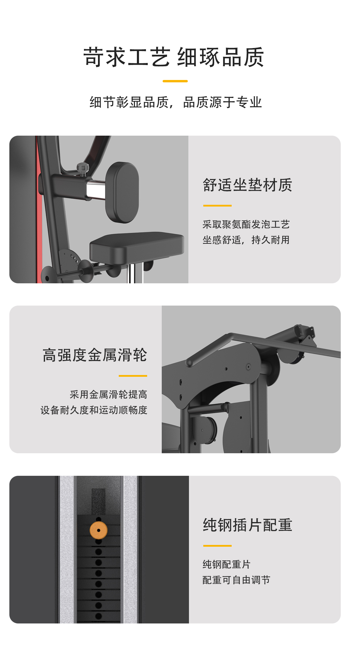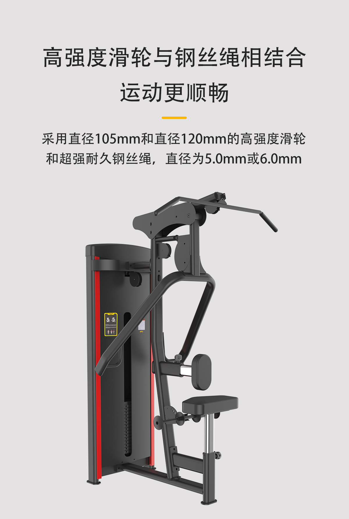 配重采用強磁插銷,一次性成型坐墊,高檔優質滑輪及鋼絲繩
