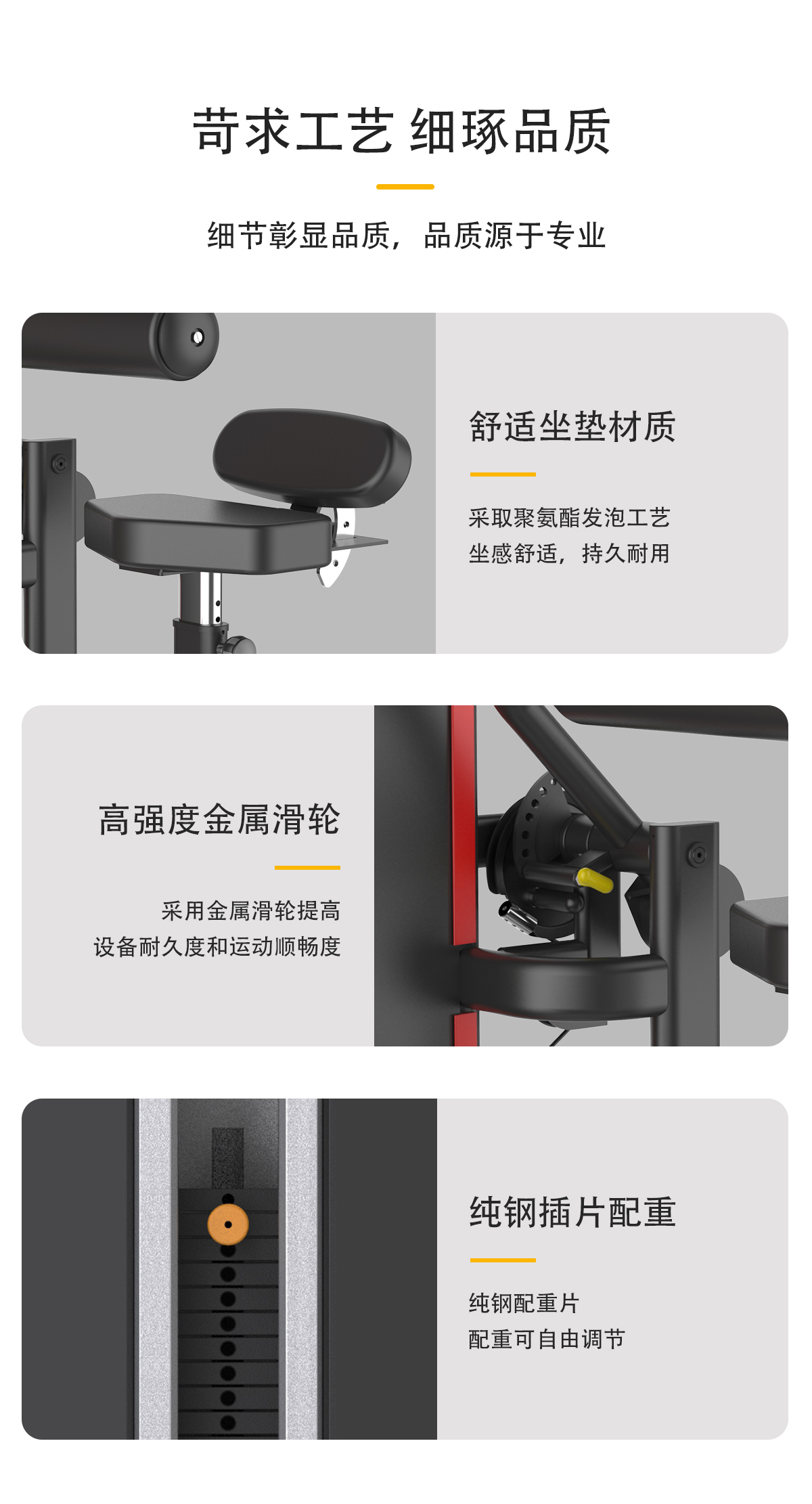 配重采用強磁插銷,一次性成型坐墊,高檔優質滑輪及鋼絲繩