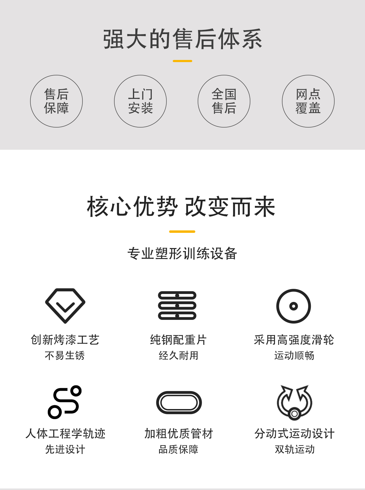 配(pèi)重采用強磁插銷,一次性成型坐墊,高檔優質滑輪及鋼絲繩