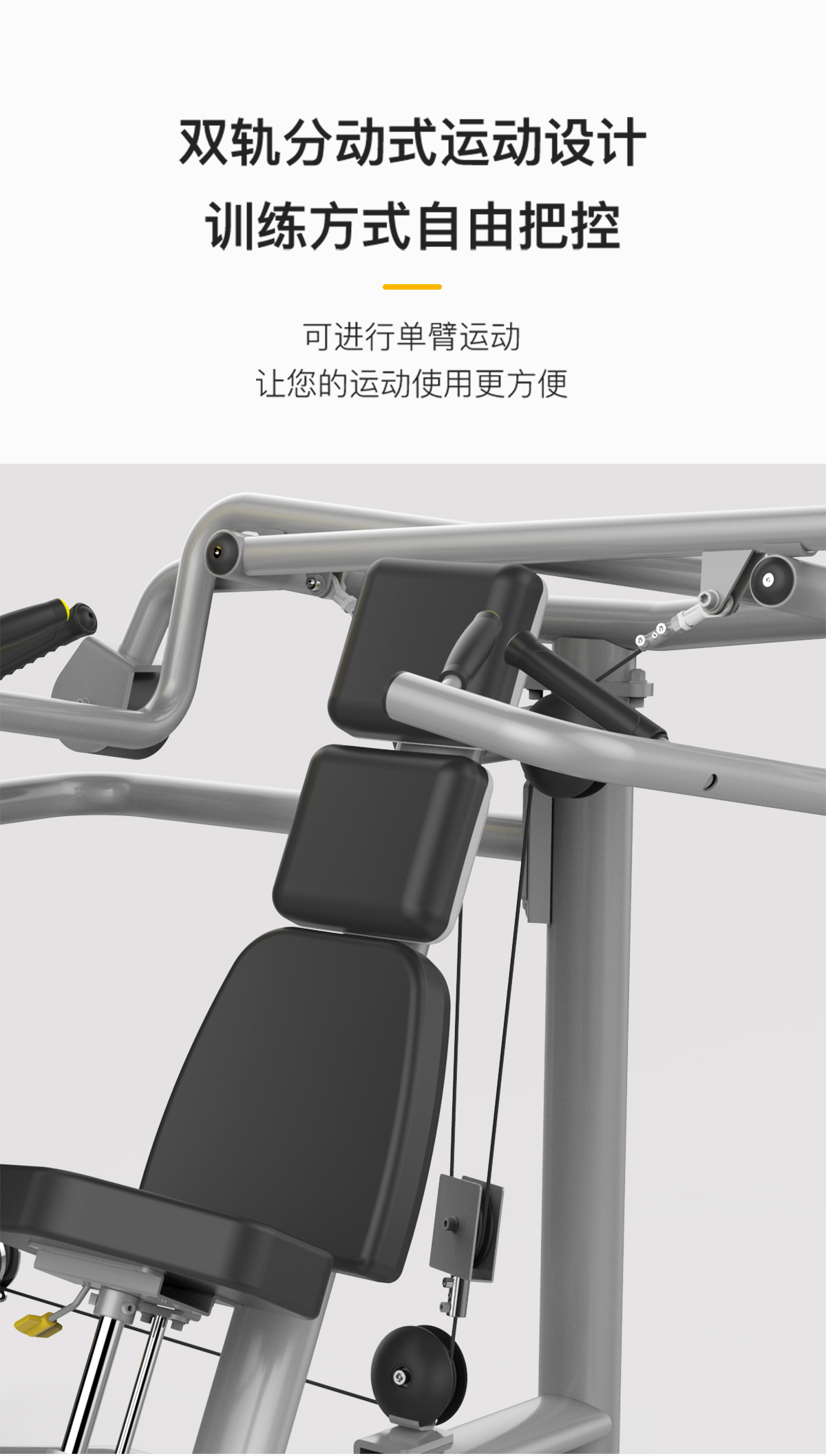 平橢圓管(guǎn)和正橢(tuǒ)圓管結合,雙軌分動式運動(dòng)設計,可進行單臂(bì)運動