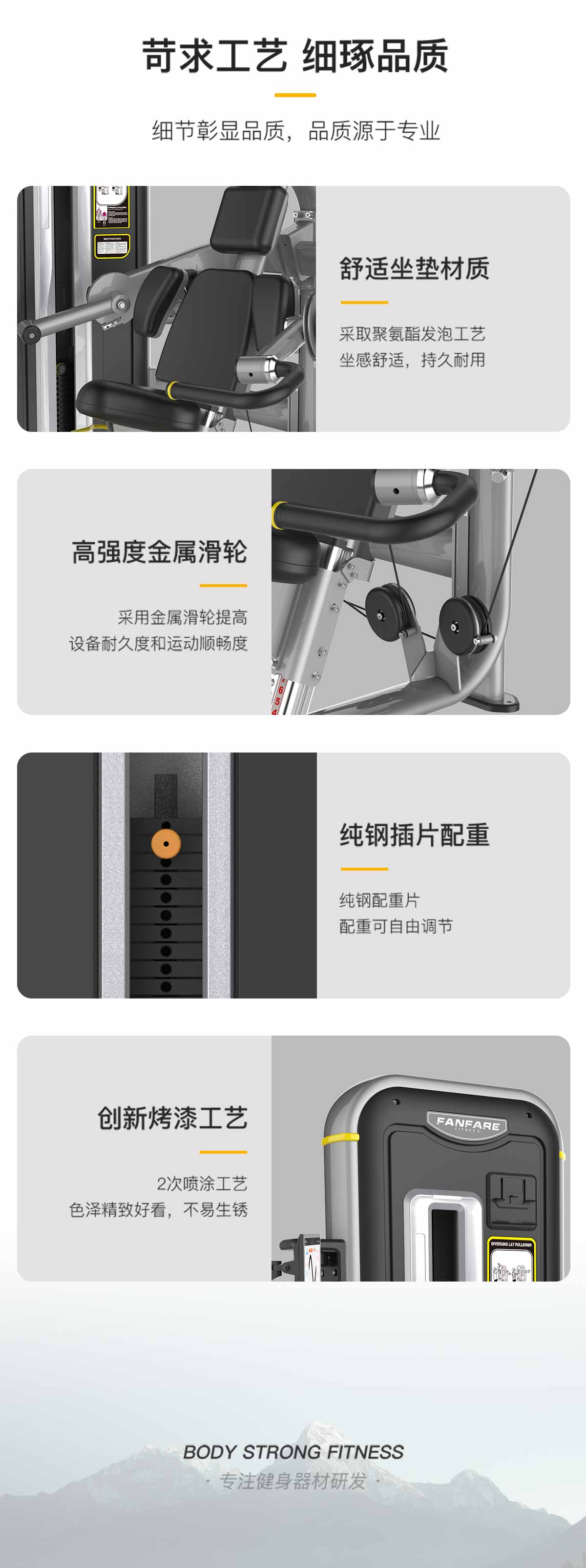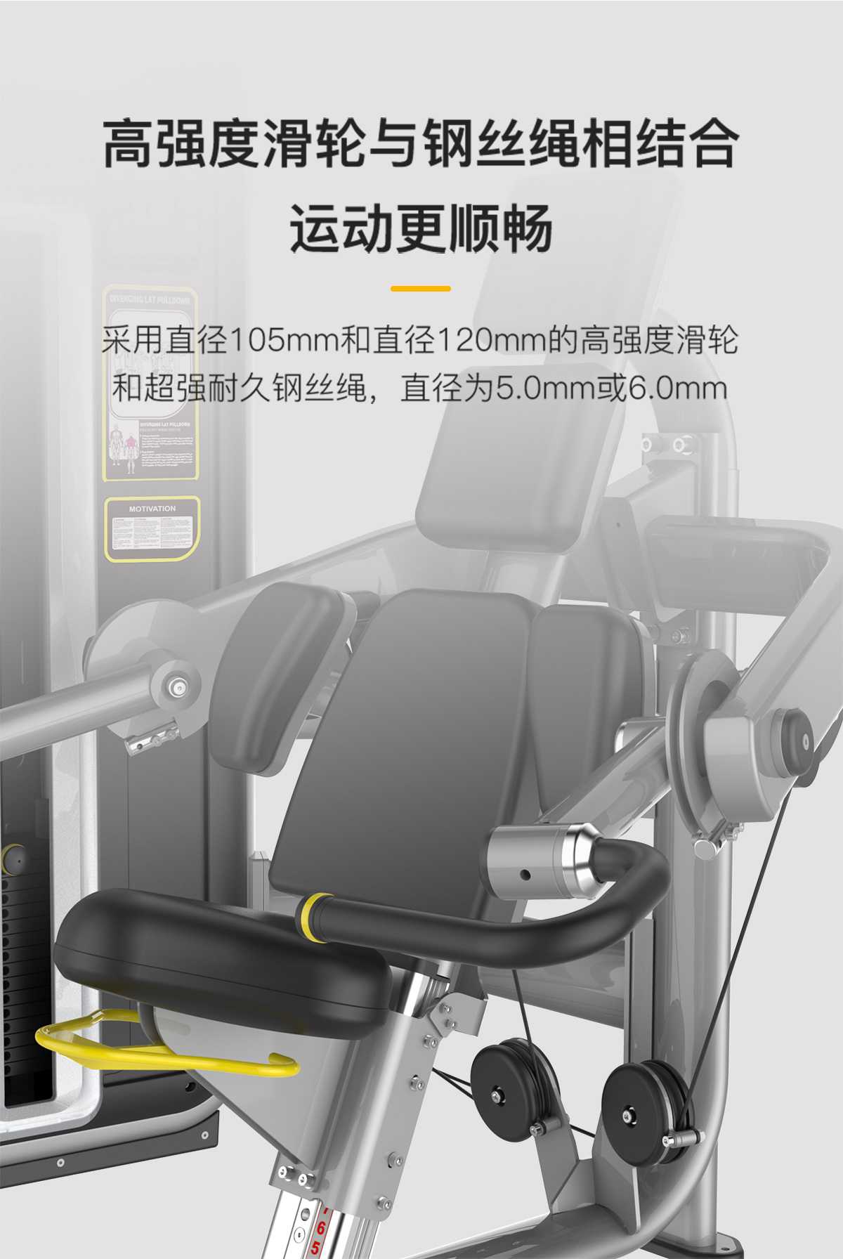 管材采用橢圓管與圓管,高(gāo)精密滑輪,超耐用鋼絲(sī)繩,智能屏幕檢測用戶訓練情況。