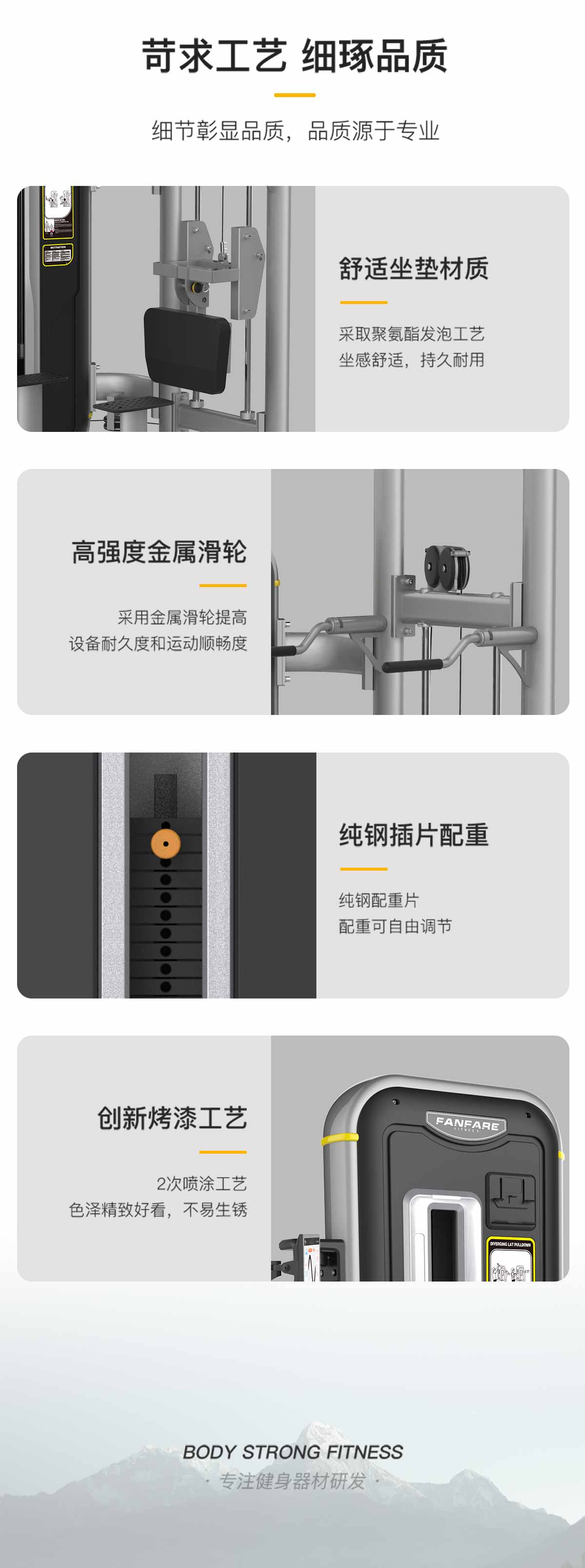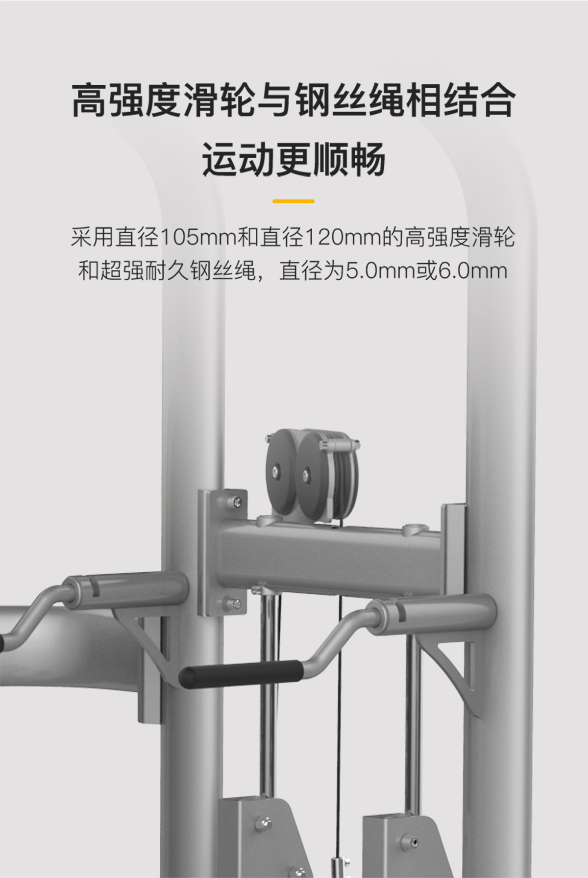 管(guǎn)材采用橢圓管與圓管,高精密滑輪,超耐用(yòng)鋼絲繩,智能屏幕檢測用戶訓練情(qíng)況。