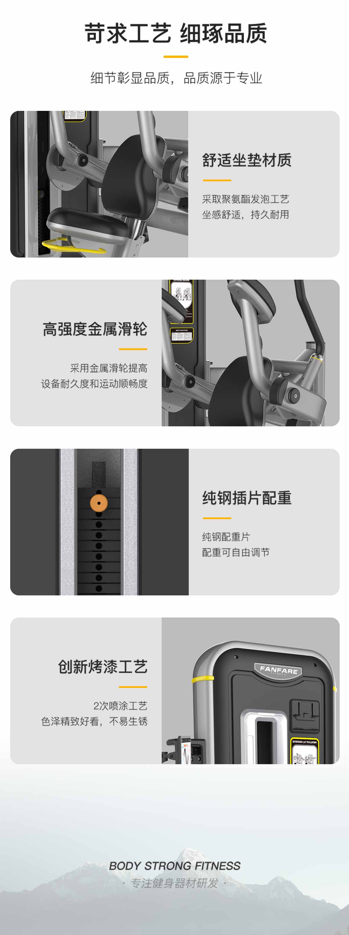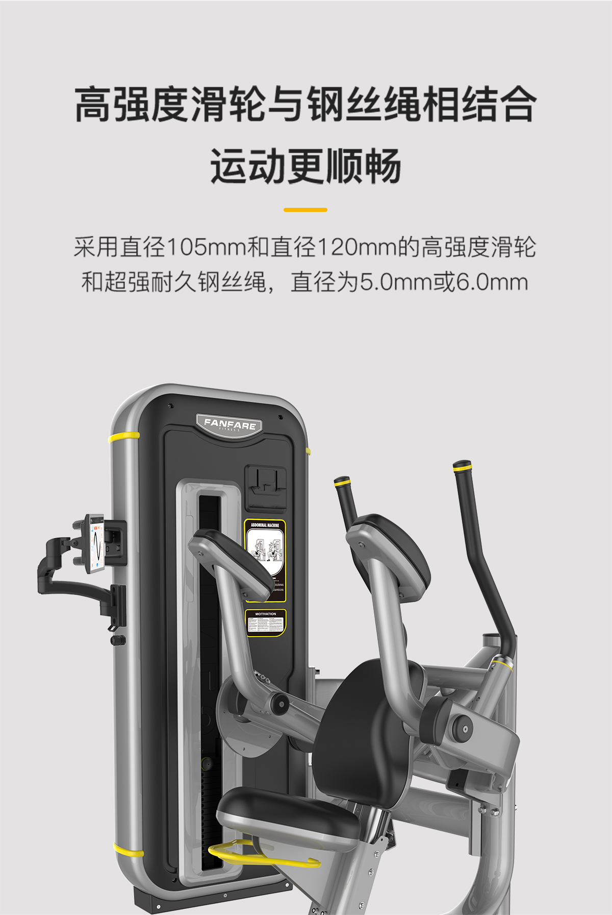 管材采用橢(tuǒ)圓管(guǎn)與圓管,高精密滑輪,超耐用鋼絲繩,智能屏(píng)幕檢(jiǎn)測用戶訓練情況。