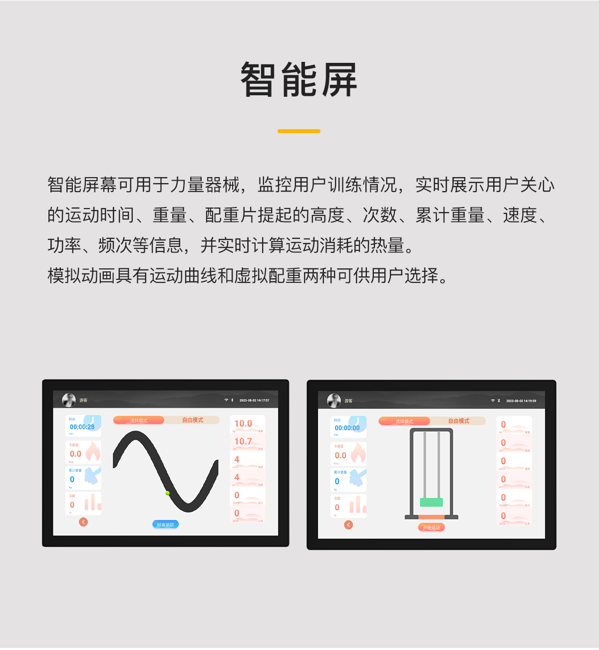 管(guǎn)材采用橢圓管與圓管,高精密滑(huá)輪,超耐用鋼絲繩,智能屏幕檢測(cè)用戶訓練情(qíng)況。