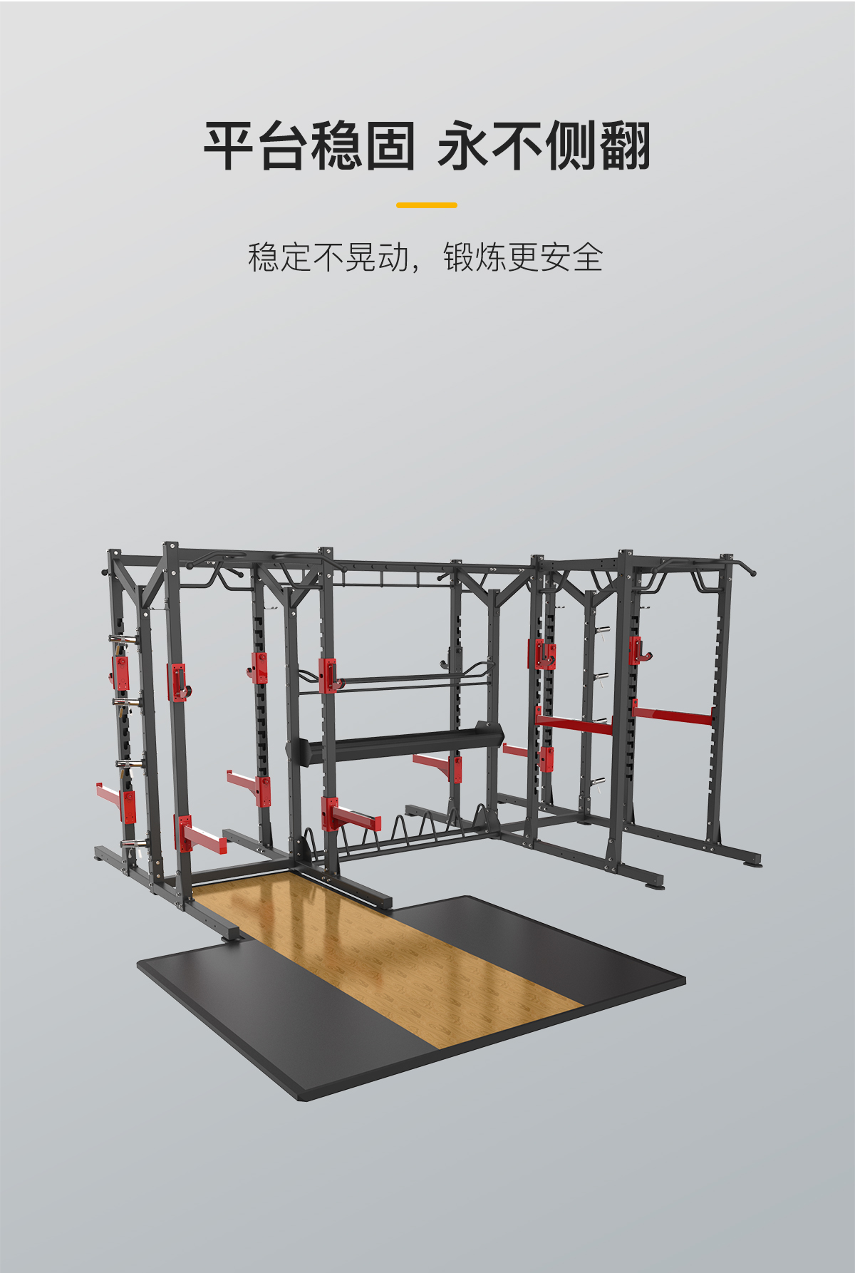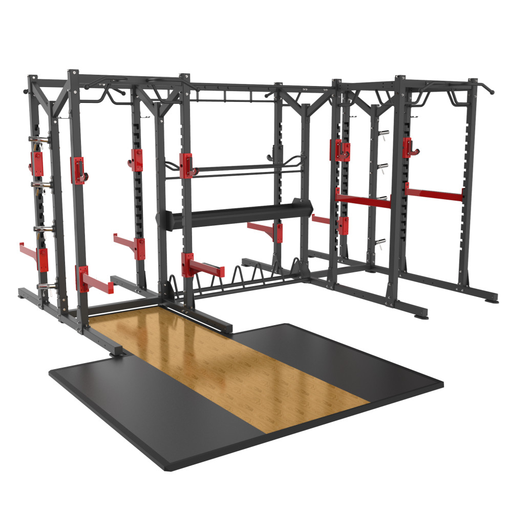 前開放式深蹲架功能模塊+多功能深蹲架功能模塊+組合單排收納模塊+多功能鏈(liàn)接附件+單杠鏈接附件+杠鈴片儲存鏈(liàn)接附件+自由儲存鏈接附件+球類儲存鏈(liàn)接附件+前(qián)開放式深(shēn)蹲訓練台(tái)