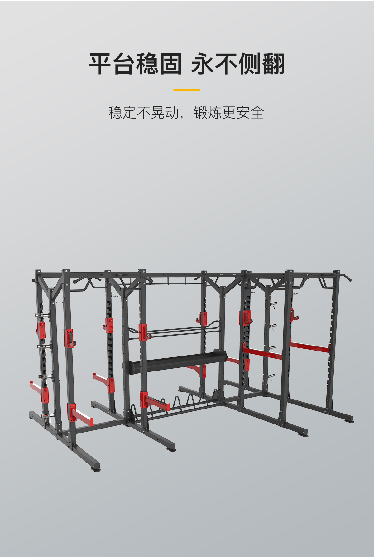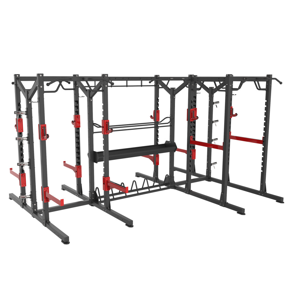 前開放式深蹲架功能(néng)模塊+多功能深蹲架功能模塊(kuài)+組合單(dān)排收納模塊+多功能鏈接(jiē)附件+單杠鏈接(jiē)附件(jiàn)+杠鈴片儲存鏈接附件+自由(yóu)儲存鏈接附件+球類(lèi)儲存(cún)鏈接附件