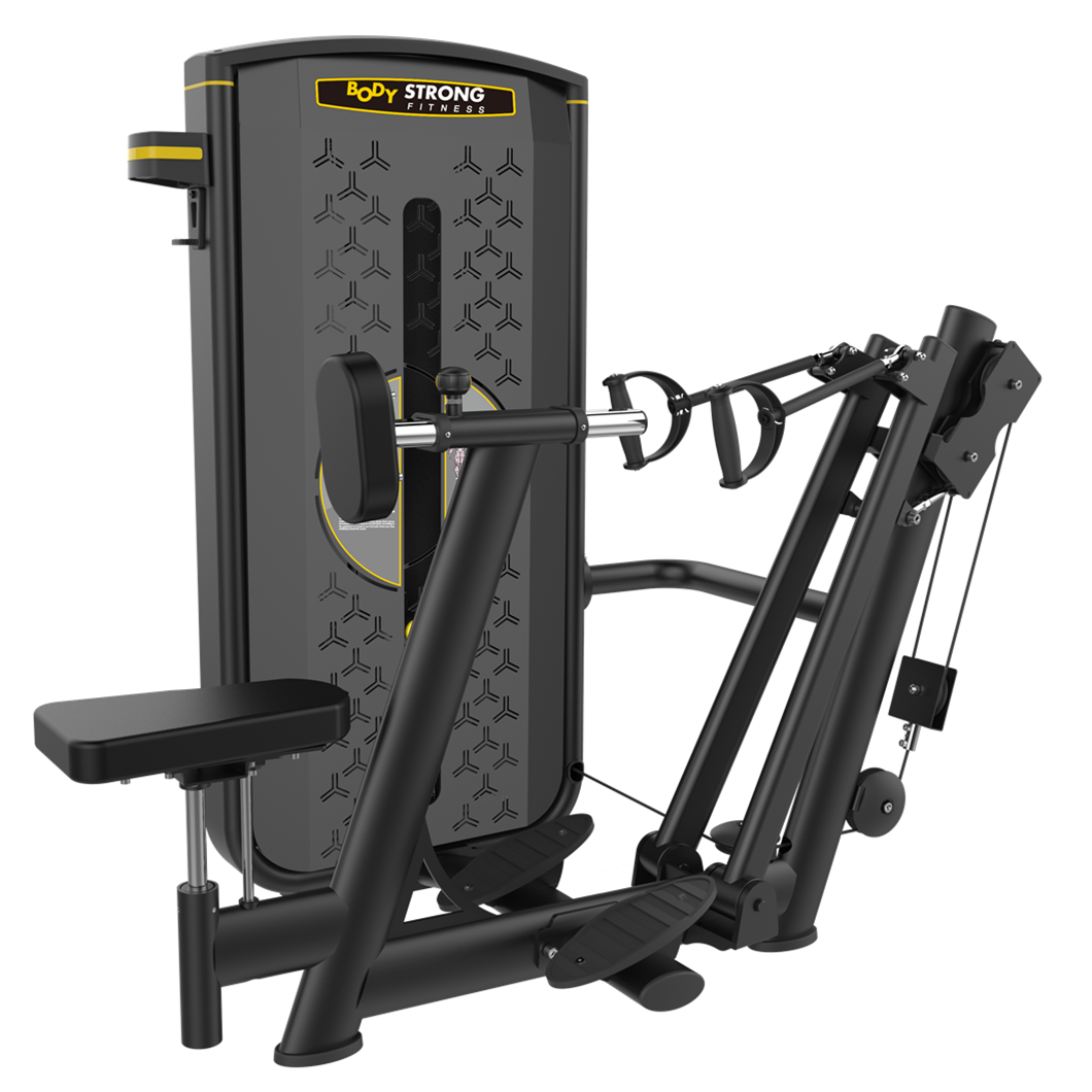 整機將平橢圓管、橢圓管完美結合,采用加厚管材,穩固耐用;搭配高強度鐵護板,並(bìng)配有安全防護罩,使器械更安全美觀;采用高檔優質鋁滑輪,堅固(gù)耐用,運動部分采用雙(shuāng)軌分動式運動設(shè)計可以進行單臂運動